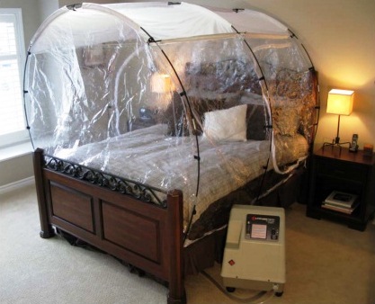 The most effective training method is pre-acclimatize while sleeping. Climbers simply sleep inside the tent overnight. The tent fits over any bed size, king or smaller. Zippered doors are on both sides of the tent for easy entry and exit. Note that the enclosure is not air tight and is not intended to be. The generator pushes air with reduced oxygen content into the tent, forcing the normal oxygenated air out of the tent. We recommend sleeping overnight for 6-8 hours at a simulated altitude of 10,500 feet for 6-8 weeks for proper pre-acclimatization for Everest Base Camp and other high altitude treks in Nepal.